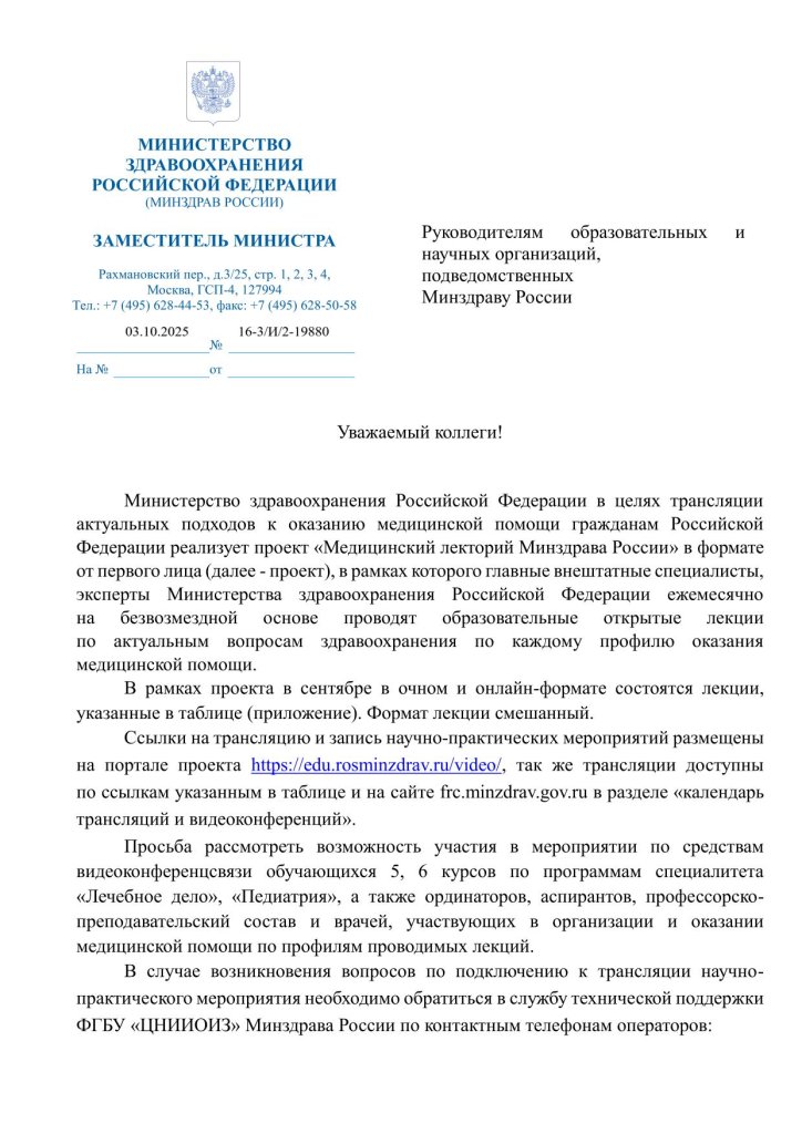 http ://194.0.219.27/participant/new/eyJpZCI6NzE0N30= https://dnmu.ru/press-center/announce/for-students/pismo- minzdrava-rossii-proekt-meditsinskiy-lektoriy/ |