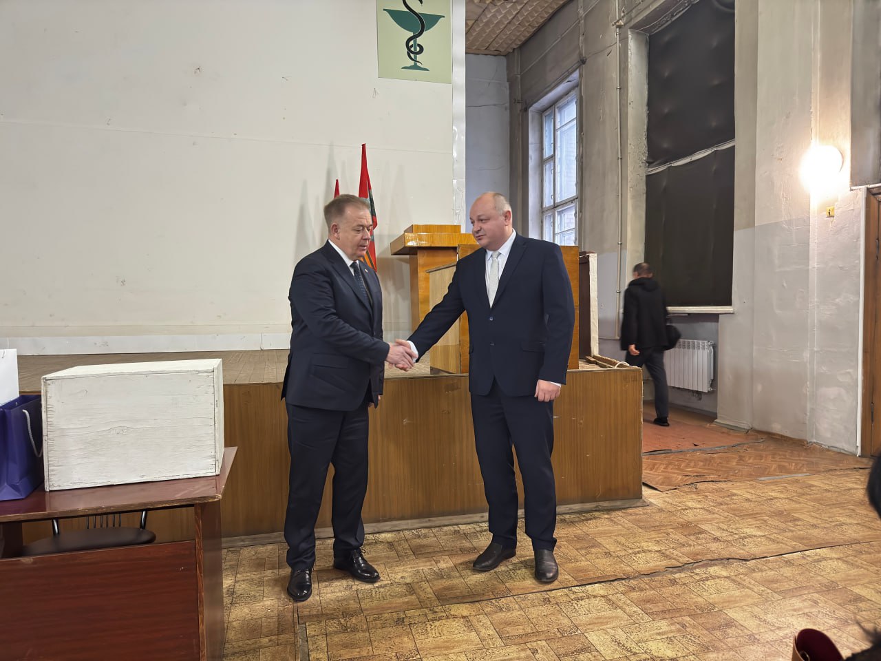 В одно из ведущих федеральных учреждений ректор и академик РАН прибыл с особой миссией – поздравить перед всем коллективом директора ФГБУ «ИНВХ им. В. К. Гусака» Минздрава России, д. м. н. Ищенко Р. В. с присвоением звания Профессор РАН. Григорий Анатольевич был одним из тех академиков, которые в Москве во время всеобщего голосования поддержали и утвердили кандидатуру Романа Викторовича.