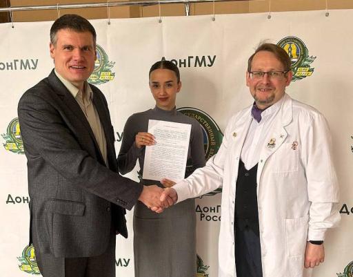 Ректор Федерального государственного бюджетного образовательного учреждения высшего образования «Донецкий государственный медицинский университет имени М. Горького» Министерства здравоохранения Российской Федерации, Герой Труда ДНР, член-корреспондент НАМНУ Г. А. Игнатенко подписал соглашение о сотрудничестве между студенческим научным обществом им. проф. Н. Д. Довгялло ДонГМУ и СНО Федерального государственного бюджетного образовательного учреждения высшего образования «Донецкая национальная академия строительства и архитектуры».