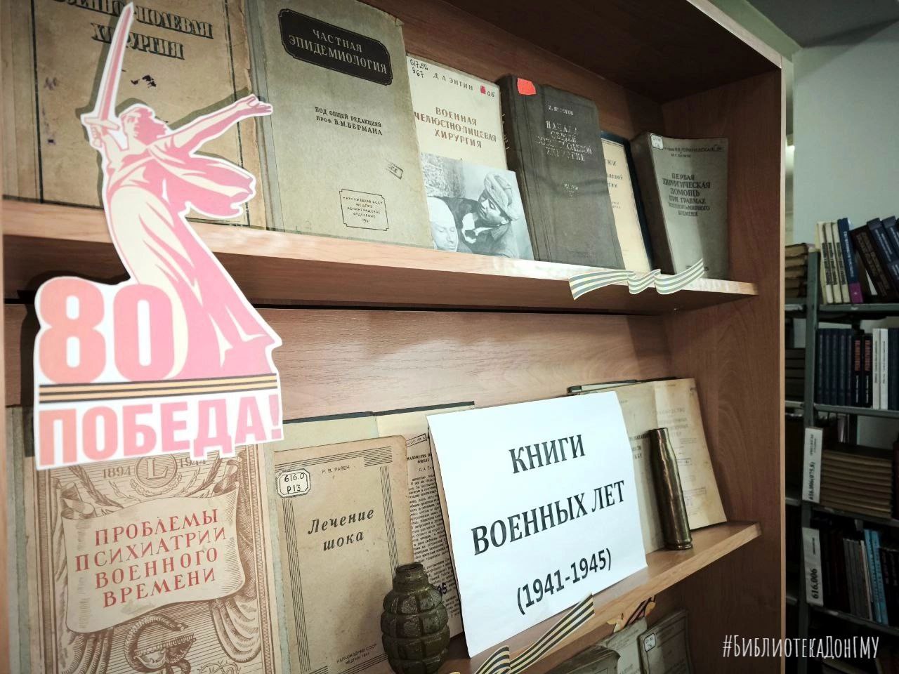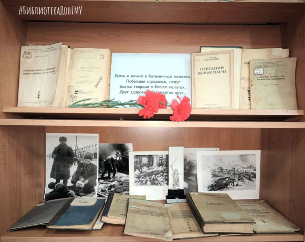 Библиотека ФГБОУ ВО ДонГМУ в рамках участия в межрегиональном сетевом проекте «Книга с историей», который проводит Государственная библиотека Кузбасса для детей и молодёжи, рассказывает о гордости книжного фонда — литературе, изданной во время Великой Отечественной войны.
