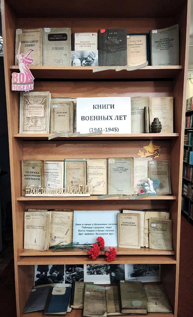 Книжная выставка «Книги военных лет (1941-1945)» действует в отделе обслуживания научной литературой и хранения фондов Библиотеки Донецкого государственного медицинского университета им. М. Горького.