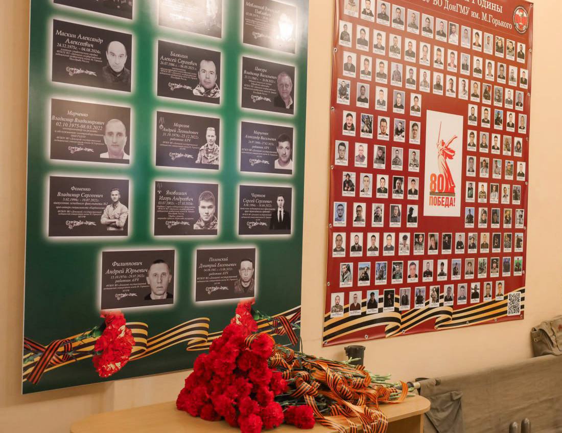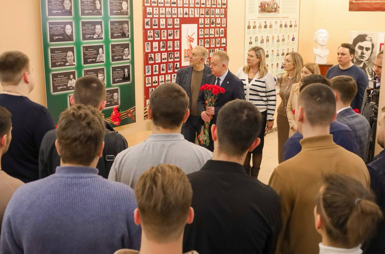 По завершении официальной части участники встречи направились к «Уголку памяти», созданному в университете, и возложили цветы, отдавая дань уважения павшим товарищам.