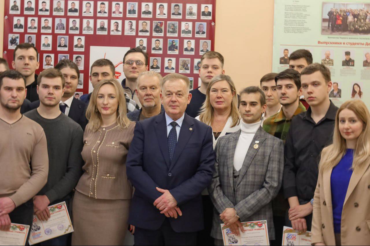В теплой и торжественной обстановке Григорий Анатольевич обратился к молодым людям, выразив глубокую признательность воспитанникам ДонГМУ за мужество, отвагу и честно отданный долг Родине.