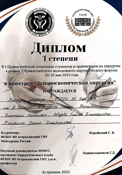 Студенты завоевали почетное I место в одном из самых сложных и технически требовательных конкурсов – «Лапароскопическая хирургия».