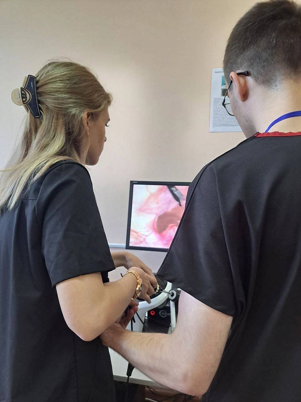 Эта хирургическая манипуляция, требующая филигранной точности, глубоких знаний анатомии и виртуозного владения лапароскопическим инструментарием. Обучающиеся блестяще справились с этим испытанием, продемонстрировав не только теоретическую подготовку, но и исключительные практические навыки.