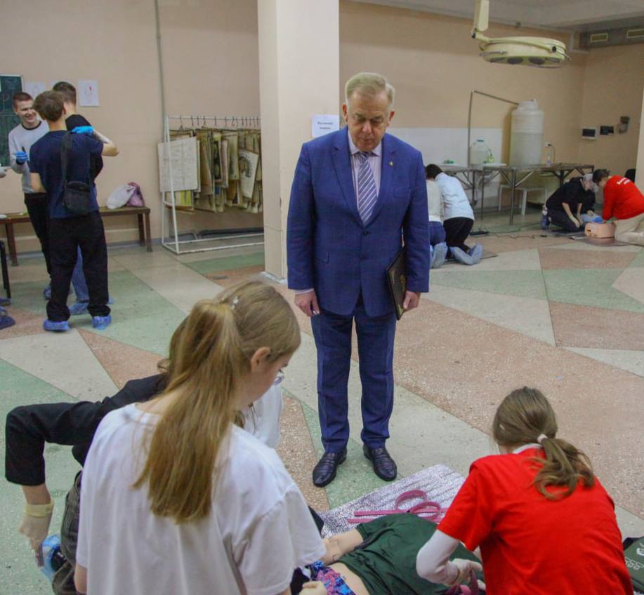 Мероприятие посетил ректор ФГБОУ ВО ДонГМУ Минздрава России, академик РАН, профессор Григорий Анатольевич Игнатенко. Он обратился к будущим абитуриентам с напутственным словом, а также осуществил контроль за правильностью выполнения алгоритмов действий по оказанию первой помощи на соответствующих локациях.