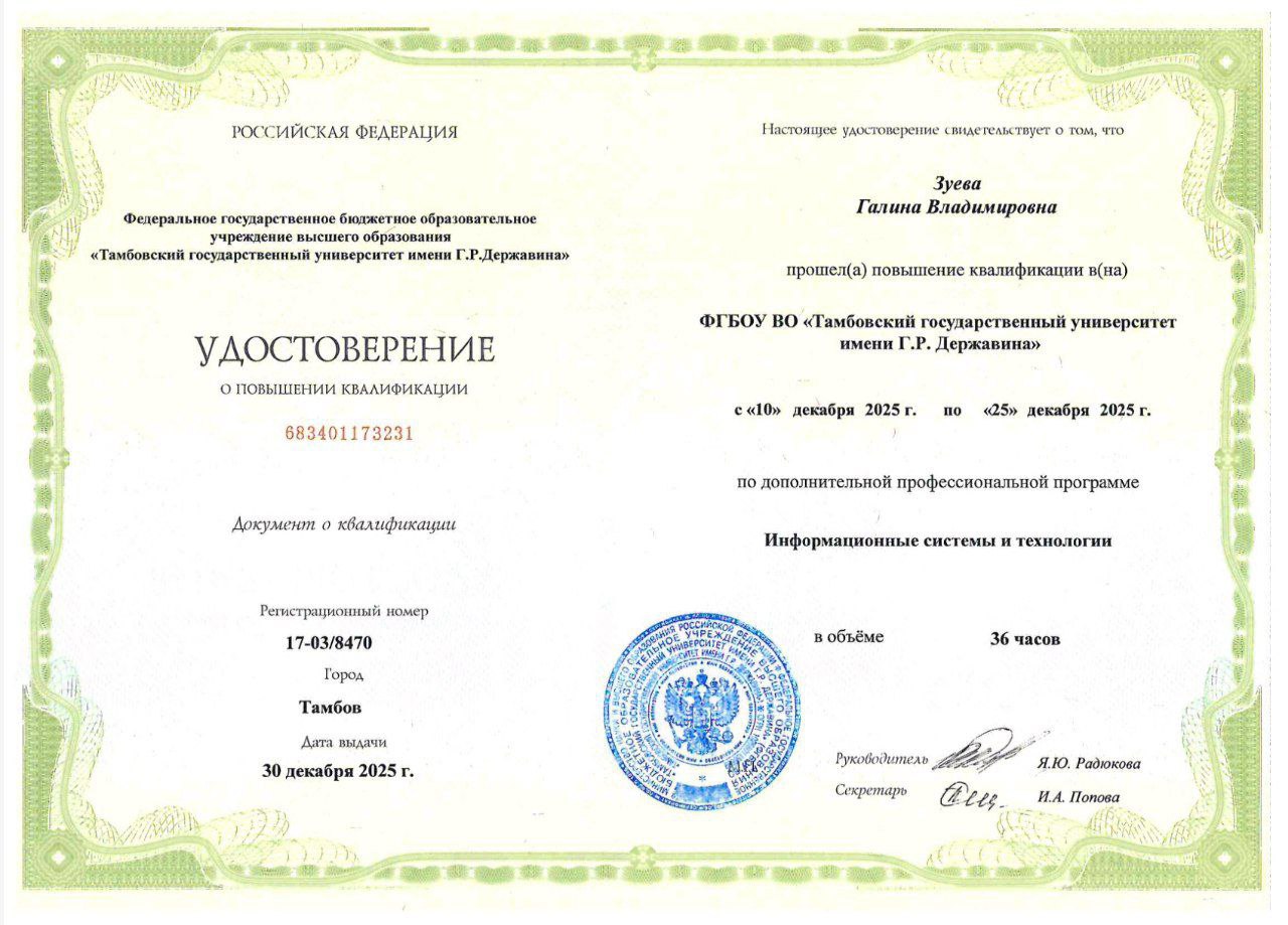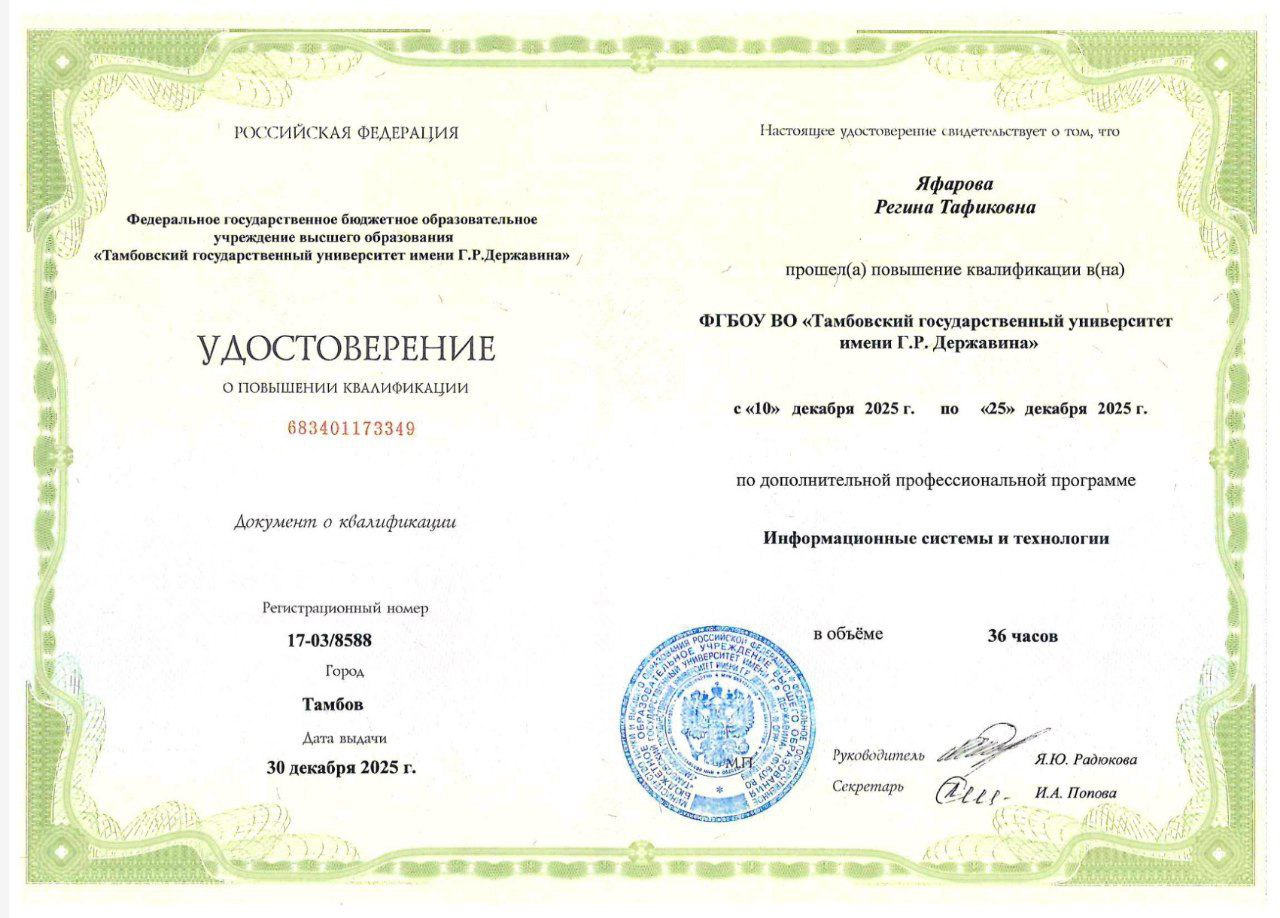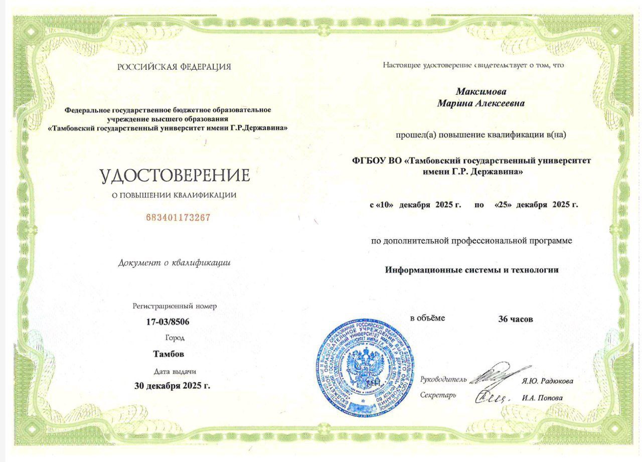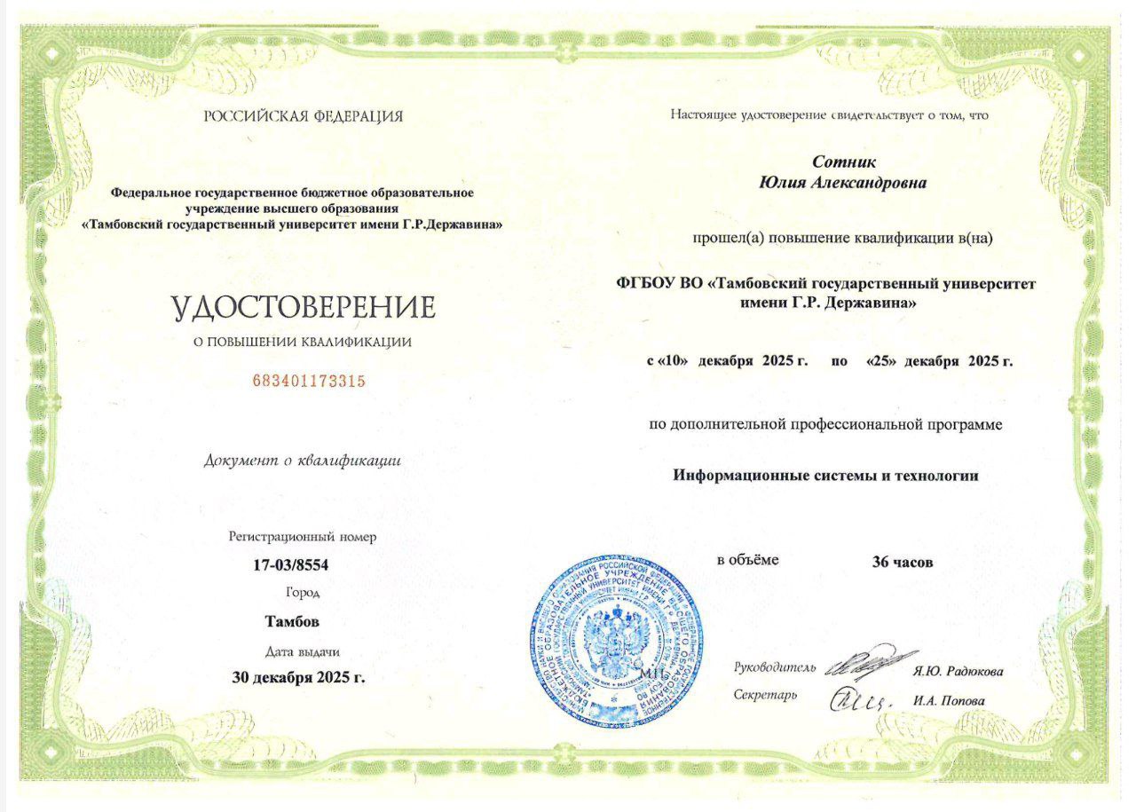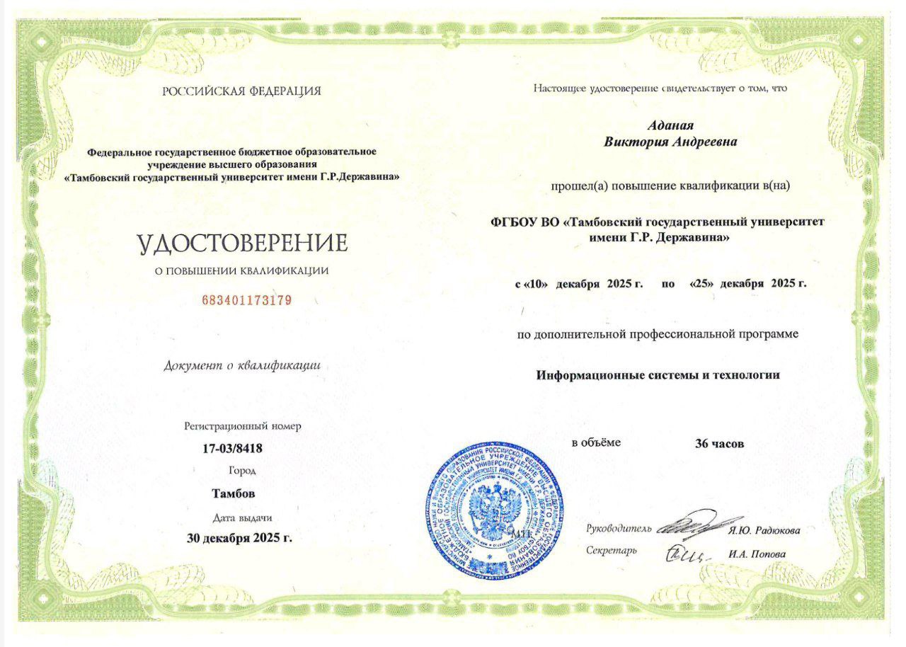 Обучение проводилось в ФГБОУ ВО «Тамбовский государственный университет имени Г. Р. Державина».
