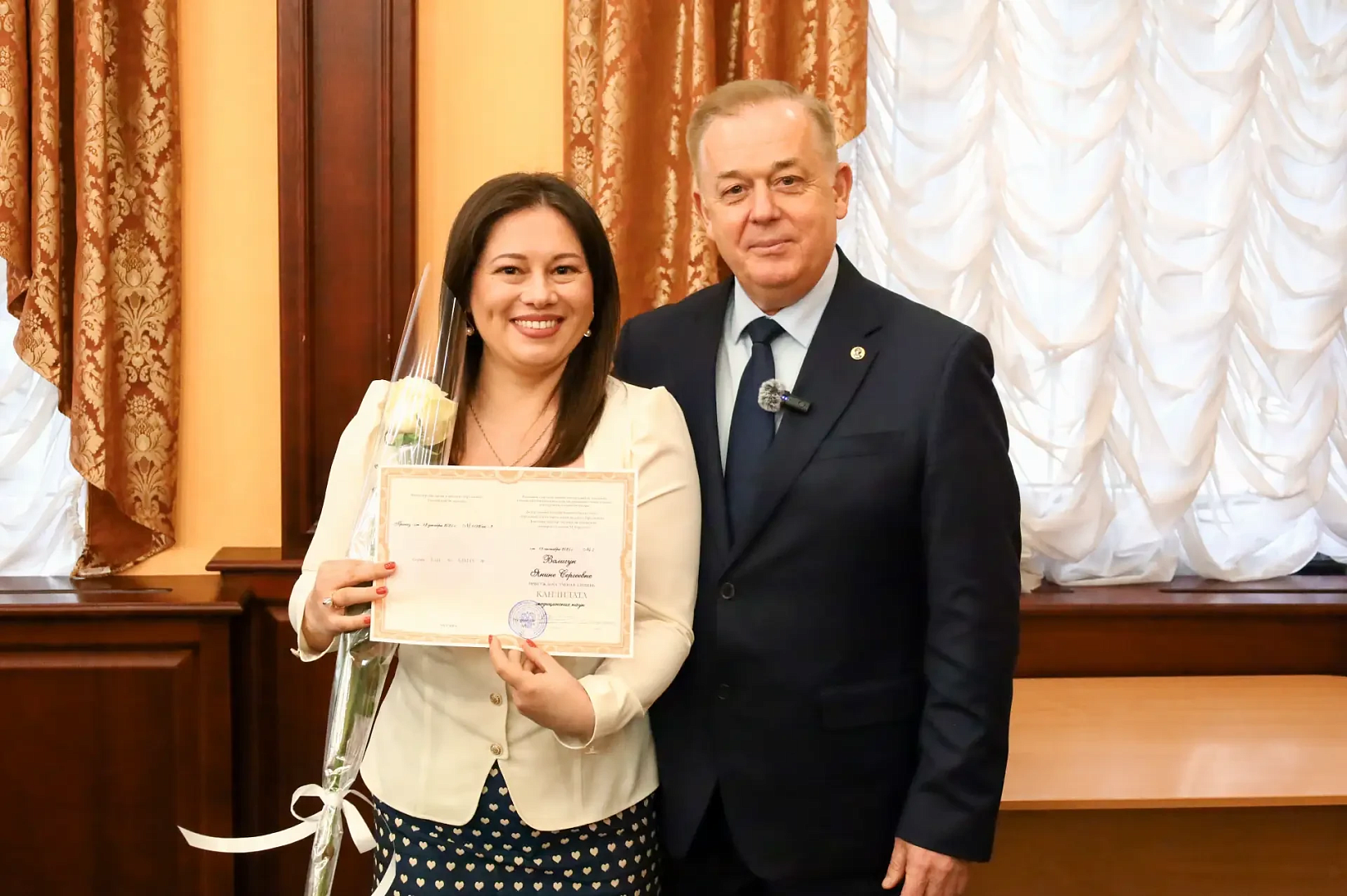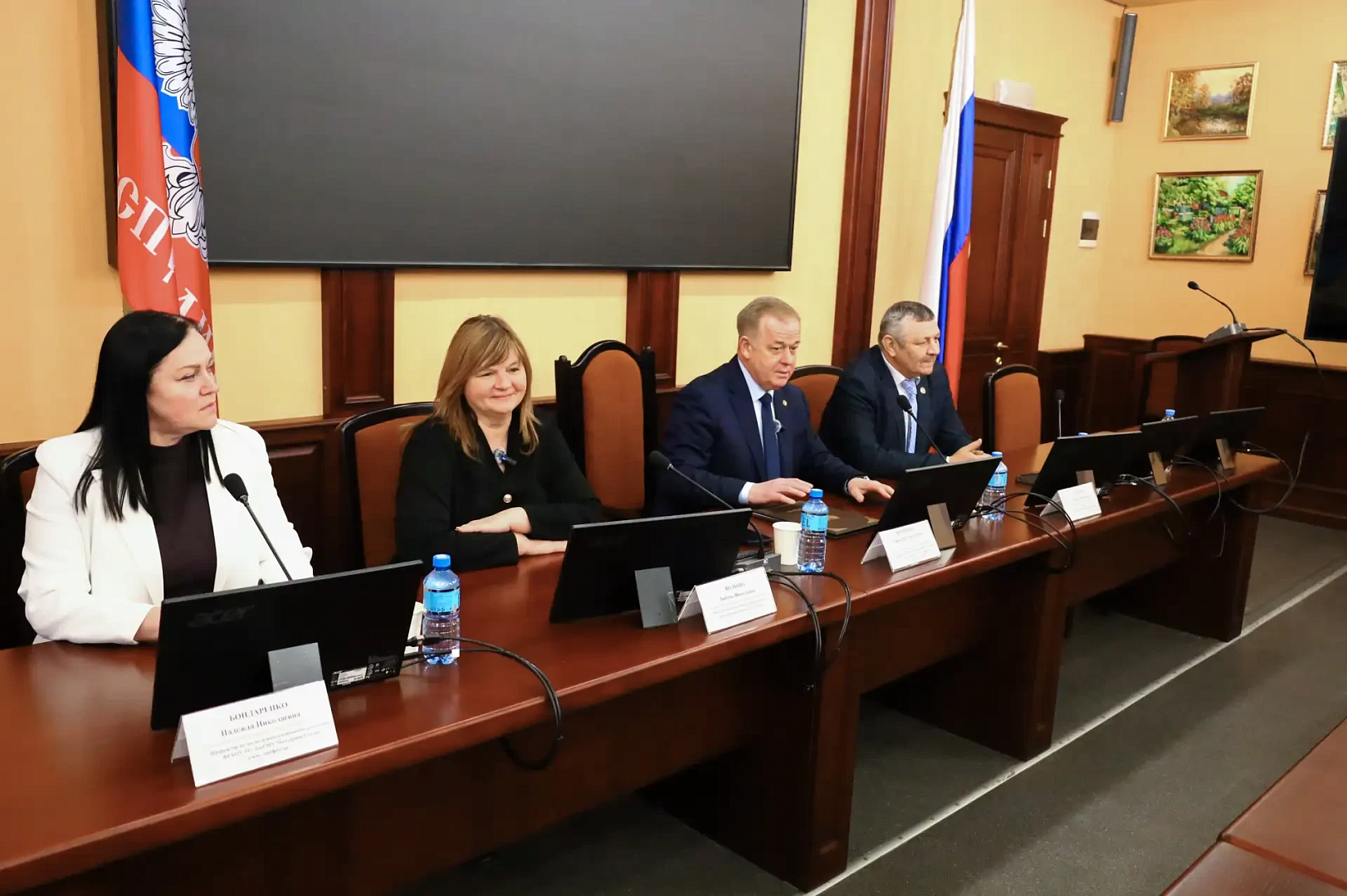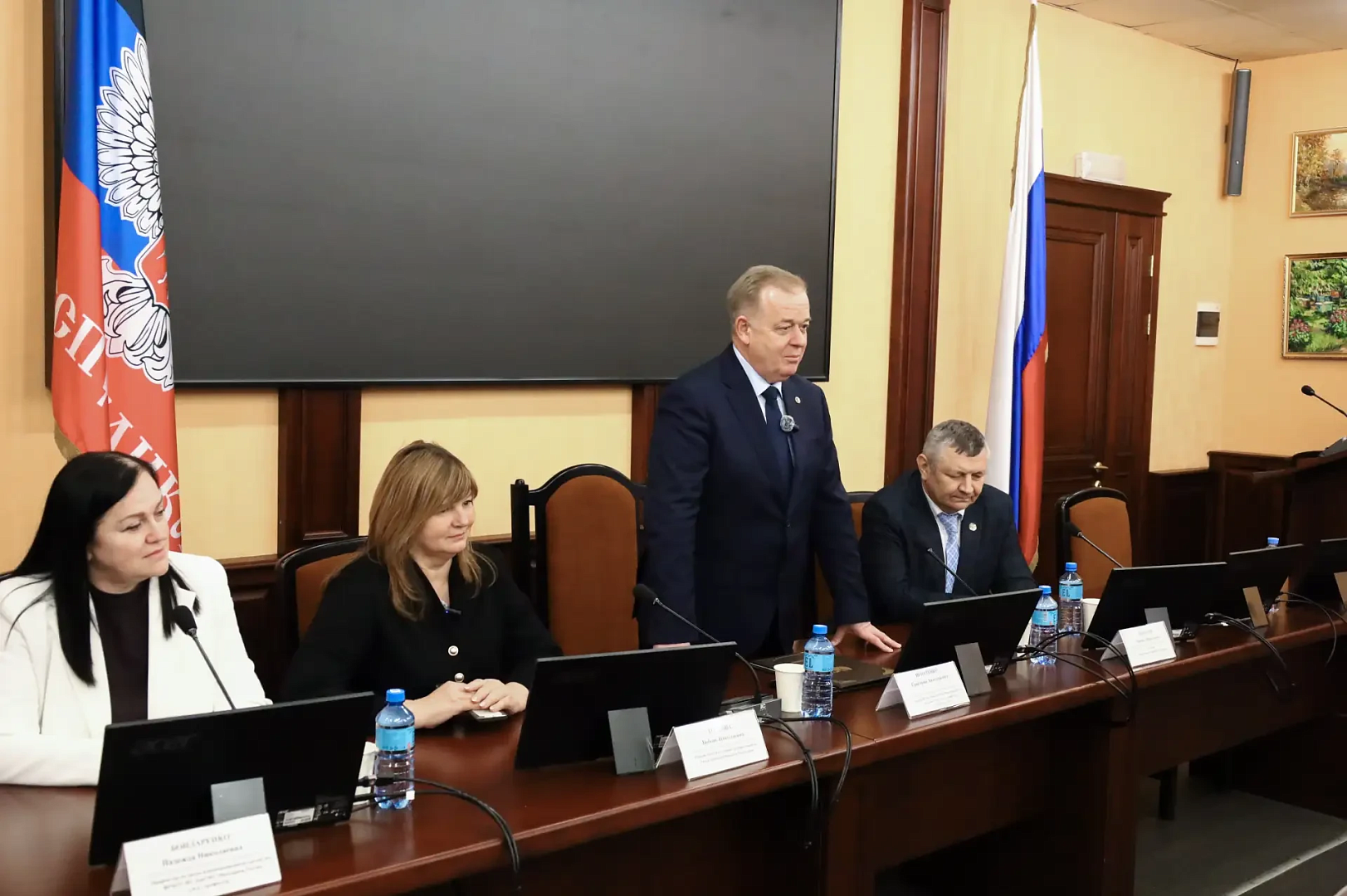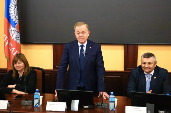 Советник Главы ДНР Кушаков М. Н. вручил аттестат доцента по специальности 5.2.6 Менеджмент Бухтияровой А. А. и диплом кандидата медицинских наук Жадан Е. С.
