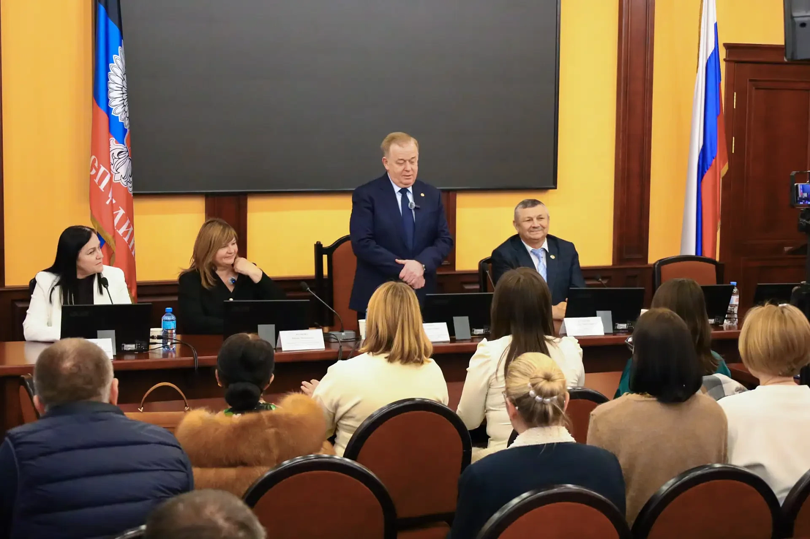 Вручение дипломов и аттестатов открыла первый заместитель министра образования и науки ДНР Волкова Л. Н. вручив аттестат доцента по специальности 3.1.17. Психиатрия и наркология Мельниченко В. В. и аттестат по специальности 5.8.4. Физическая культура и профессиональная физическая подготовка Калиновской Т. Н.