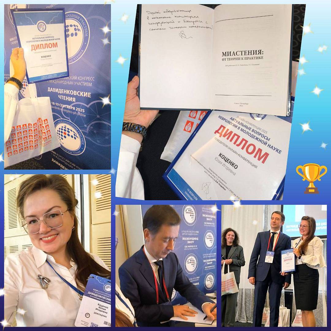 В рамках пленарного заседания конгресса были торжественно вручены дипломы победителям престижного конкурса цикла онлайн-конференций «Актуальные вопросы неврологии в молодежной науке». Одним из лауреатов этого конкурса стала доцент кафедры неврологии и медицинской генетики, кандидат медицинских наук Юлия Игоревна Коценко.