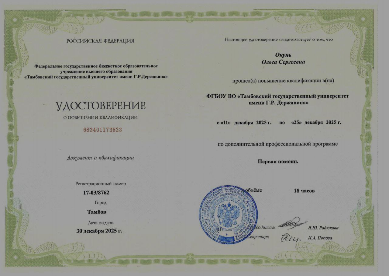 - Окунь Ольга Сергеевна,
